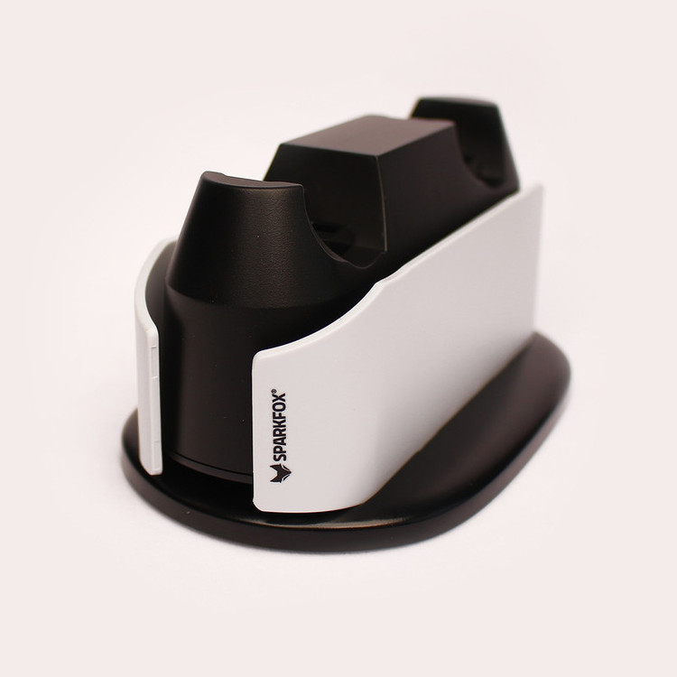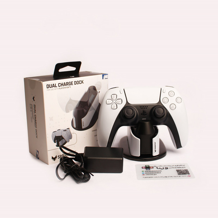 SPARKFOX Dual Charge Dock PS5 تولید شرکت اسپارک فاکس است که لوازم جانبی کنسول های سونی را تولید می کند و جدیدترین محصول آن ها کیت یا پایه شارژ دسته برای کنترلر محبوب پلی استیشن 5 یعنی دوال سنس است. این محصول فقط از نظر طراحی ظاهری تفاوت هایی با محصول اصلی شرکت سونی دارد ولی در کارایی دقیقا مشابه آن عمل میکند. دسته های شما را دو ساعته به صورت صد در صد شارژ میکند و میتوانید هر دو دسته را به صورت همزمان با آن شارژ کنید. همچنین سنسوری در آن طراحی شده که وقتی دسته به شارژ کامل برسد برق رسانی به آن را قطع میکند تا بیشترین عمر باطری را برای شما داشته باشد. ظاهر این گجت هرچند شبیه به وسیله اصلی شرکت سونی نیست ولی همخوانی نسبتا خوبی را با کنسول شما دارد. پایه شارژر دسته کنترلر SPARKFOX Dual Charge Dock PS5 هم میتواند با خود کنسول برق رسانی شود و هم اداپتور همراه خود دارد و میتوانید آن را با برق مستقیم متصل کنید.