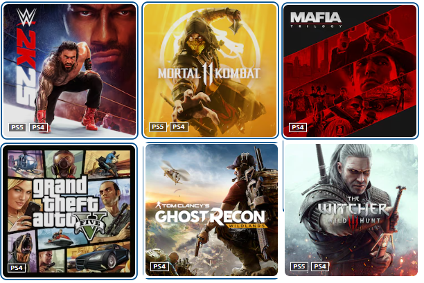 اکانت بازی wwe 2k25 + gta v + ghost racon + mafia trilogy + mortal 11 + witcher 3 - ظرفیت 1 - ps4 & ps5