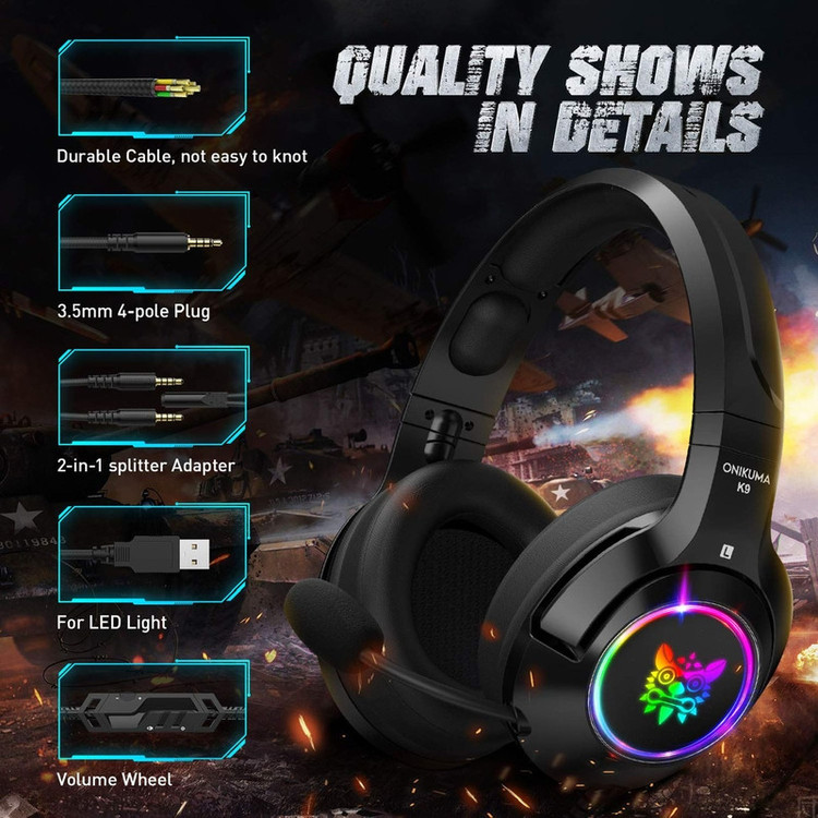 هدفون مخصوص بازی اونیکوما مدل K9 برای گیمرهایی که قصد دارند صدای با کیفیت داشته باشند گزینه مناسبی است. برای این مدل، رنگ یک دست مشکی در نظر گرفته شده است. در قسمت کاپ این هدفون نورهای RGB قرار دارد که با اتصال هدفون روشن میشوند. یکی از ویژگیهای این مدل، کابل 2.2 متری و روکش بافته شده آن است. استفاده از این روکش باعث شده تا کابل هدفونتان گره نخورد یا پاره نشود. این مدل دو کانکتور جک 3.5 میلیمتری و USB دارد. از ویژگیهایی که برای این هدفون تعبیه شده میتوان به کاهش نویز میکروفون اشاره کرد. این ویژگی باعث شده تا صدایتان شفافتر و با کیفیت بهتری باشد. قطر درایور این مدل 50 میلیمتر و به صورتی طراحی شده تا علاوه بر کیفیت مطلوب، در استفادههای دراز مدت گوشتان را خسته نکند. میکروفون این مدل قابلیت جابهجایی به داخل را دارد و زمانی که نیازی به آن ندارید با استفاده از این ویژگی، میکروفون را از جلوی دیدتان خارج میکنید. قطعا یکی از فاکتورهای مهم برای هر گیمری بهرهمندی از یک صدای با کیفیت و با جزئیات بالا است. انتخاب و خرید یک هدست مناسب میتواند کیفیت و لذت تجربه بازی را به میزان قابل توجهی افزایش دهد. برخی از افراد ترجیح میدهند با استفاده از اسپیکر، لذت صدای با کیفیت در بازی را تجربه کنند؛ اما اغلب گیمرها استفاده از هدستهای مخصوص گیم را ترجیح میدهند و این موضوع در بازیهای آنلاین که نیاز به گفت و گو میان بازیکنان است بیشتر به چشم میخورد.